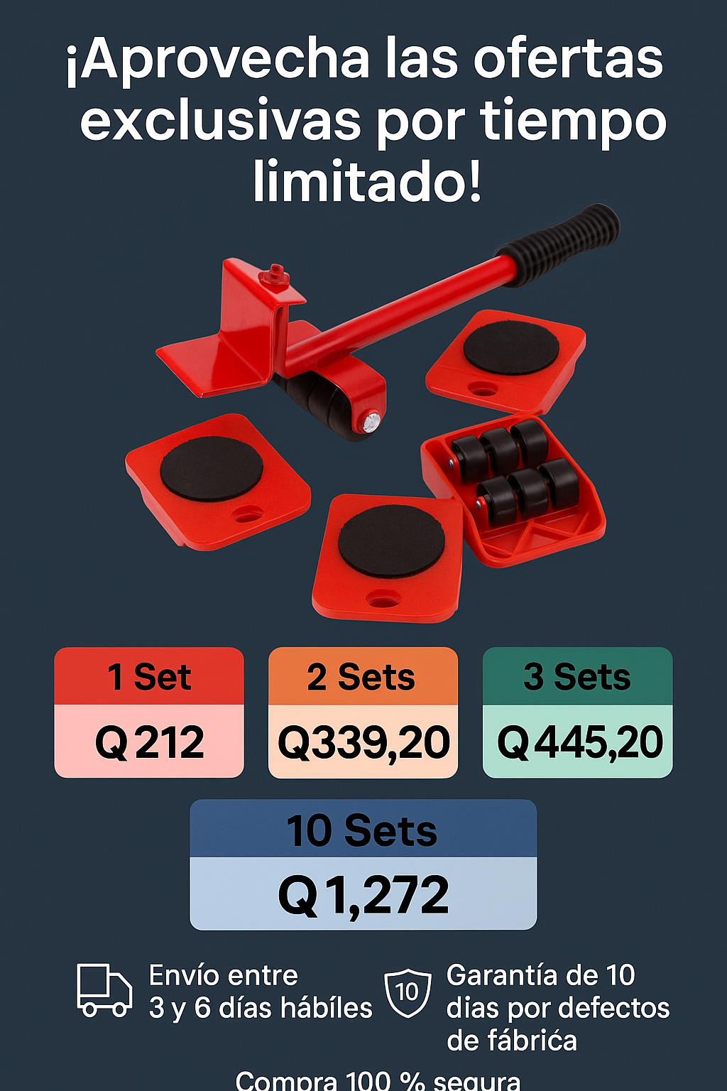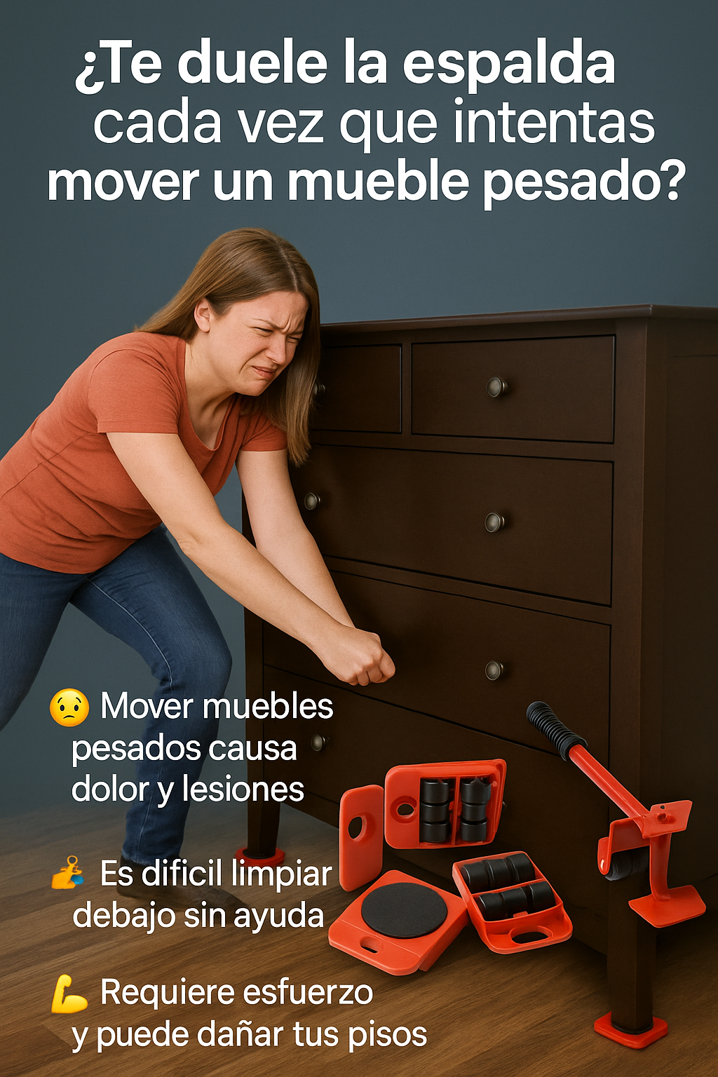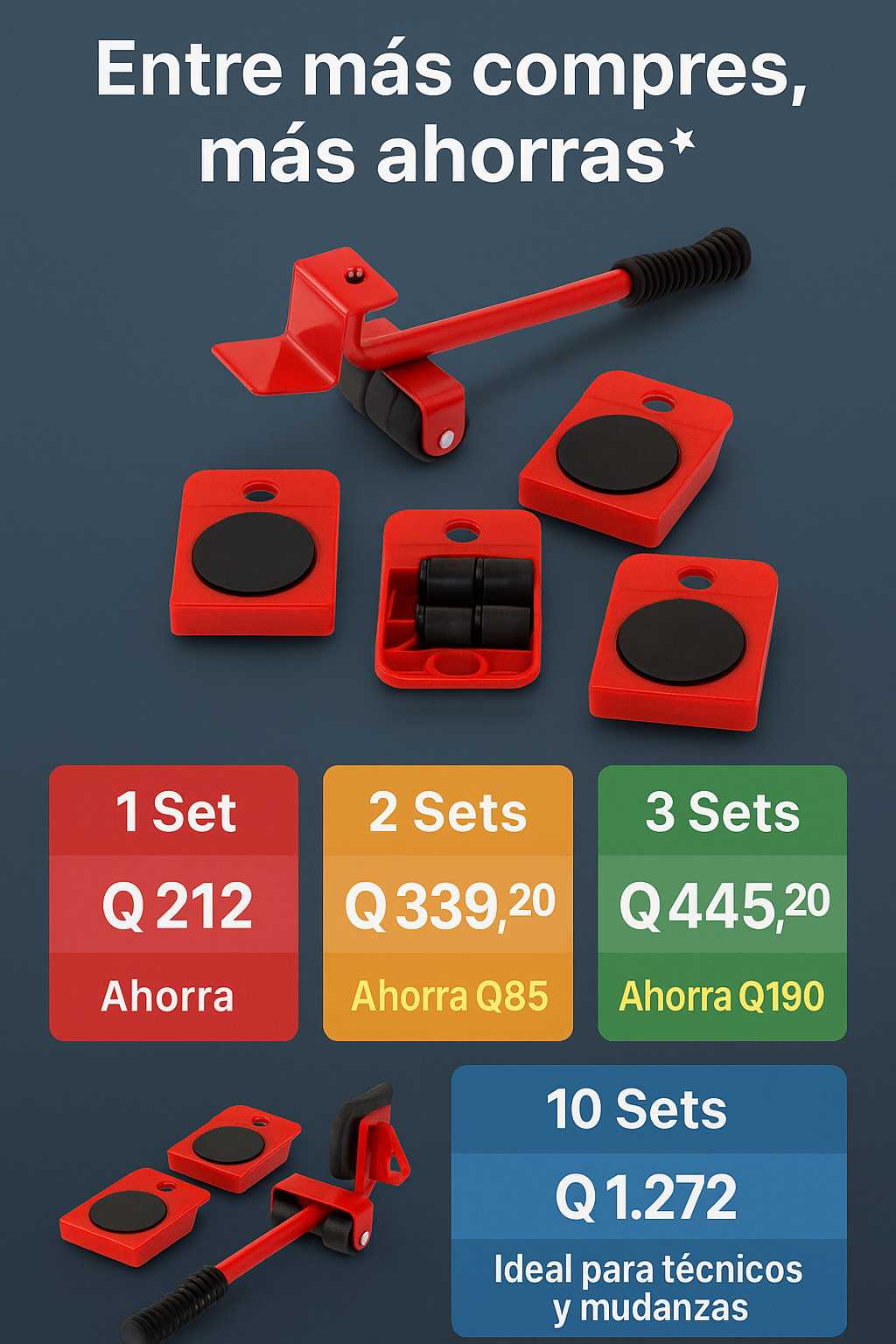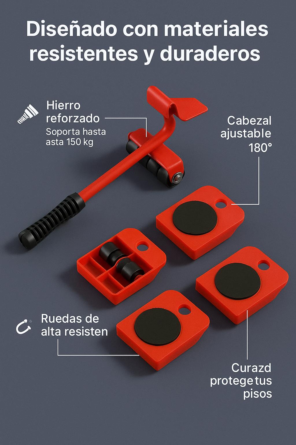 Levantamiento sin esfuerzo:El elevador con ruedas y los 4 motores de esquina con ruedas te permiten levantar o mover muebles pesados sin esfuerzo, incluso en espacios reducidos.