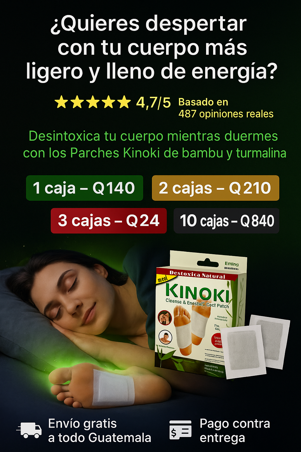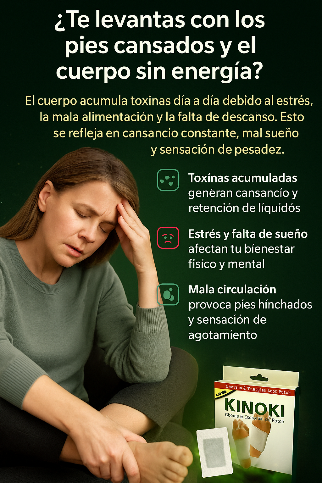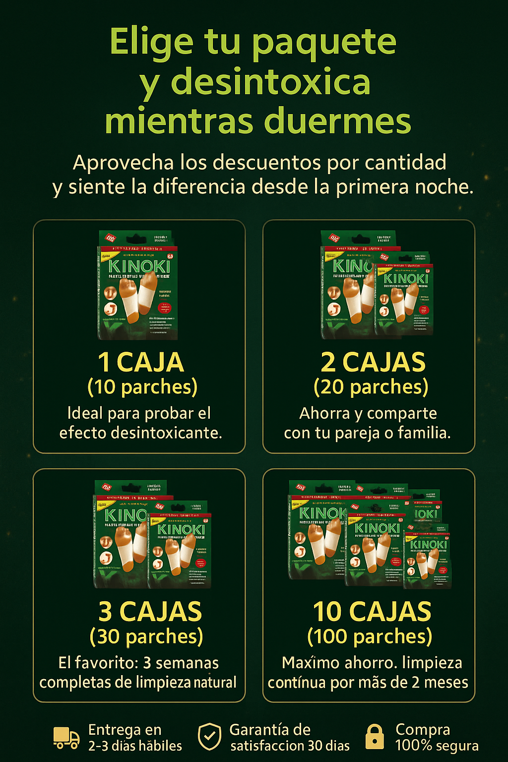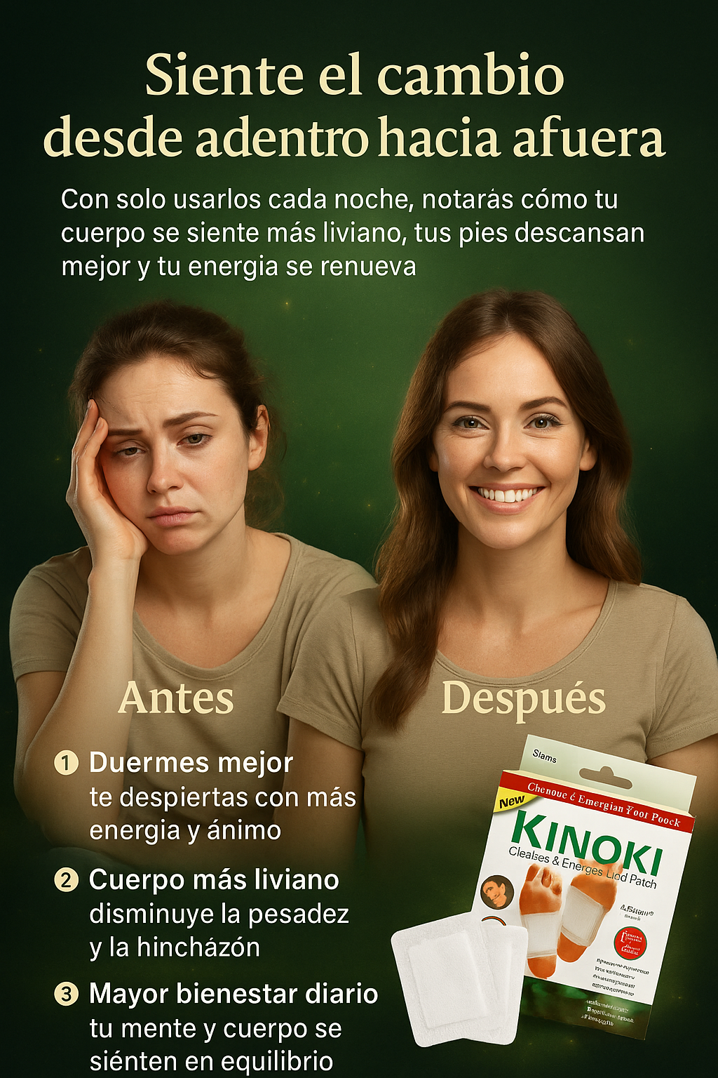 LosParches Desintoxicantes Kinokiestán diseñados para actuar durante la noche, cuando el cuerpo descansa, promoviendo una sensación de ligereza, bienestar y renovación. Su fórmula basada en ingredientes herbales y minerales, como vinagre de bambú, turmalina y raíz de loto, se activa con el calor del cuerpo para apoyar el proceso natural de limpieza interna.