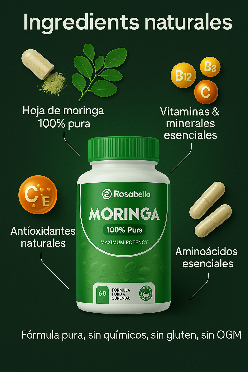 Polvo de moringa puro, energía, piel, inmune y salud intestinal, superalimento rico en antioxidantes, vitaminas esenciales y aminoácidos, suplemento de superalimento verde