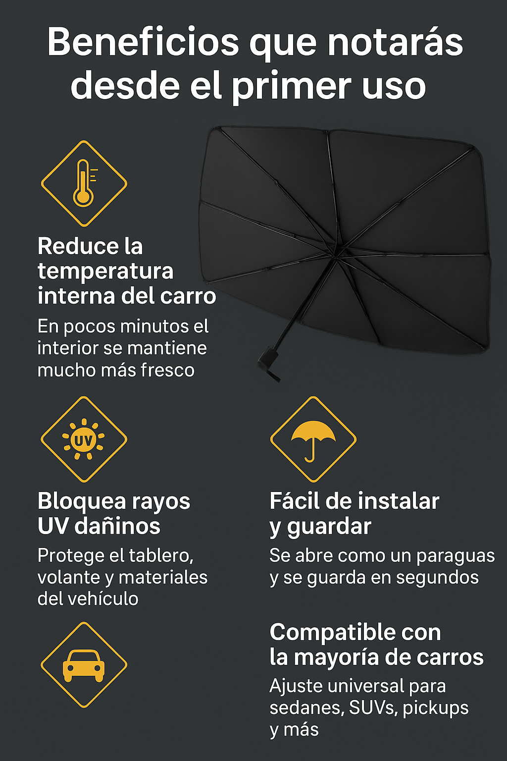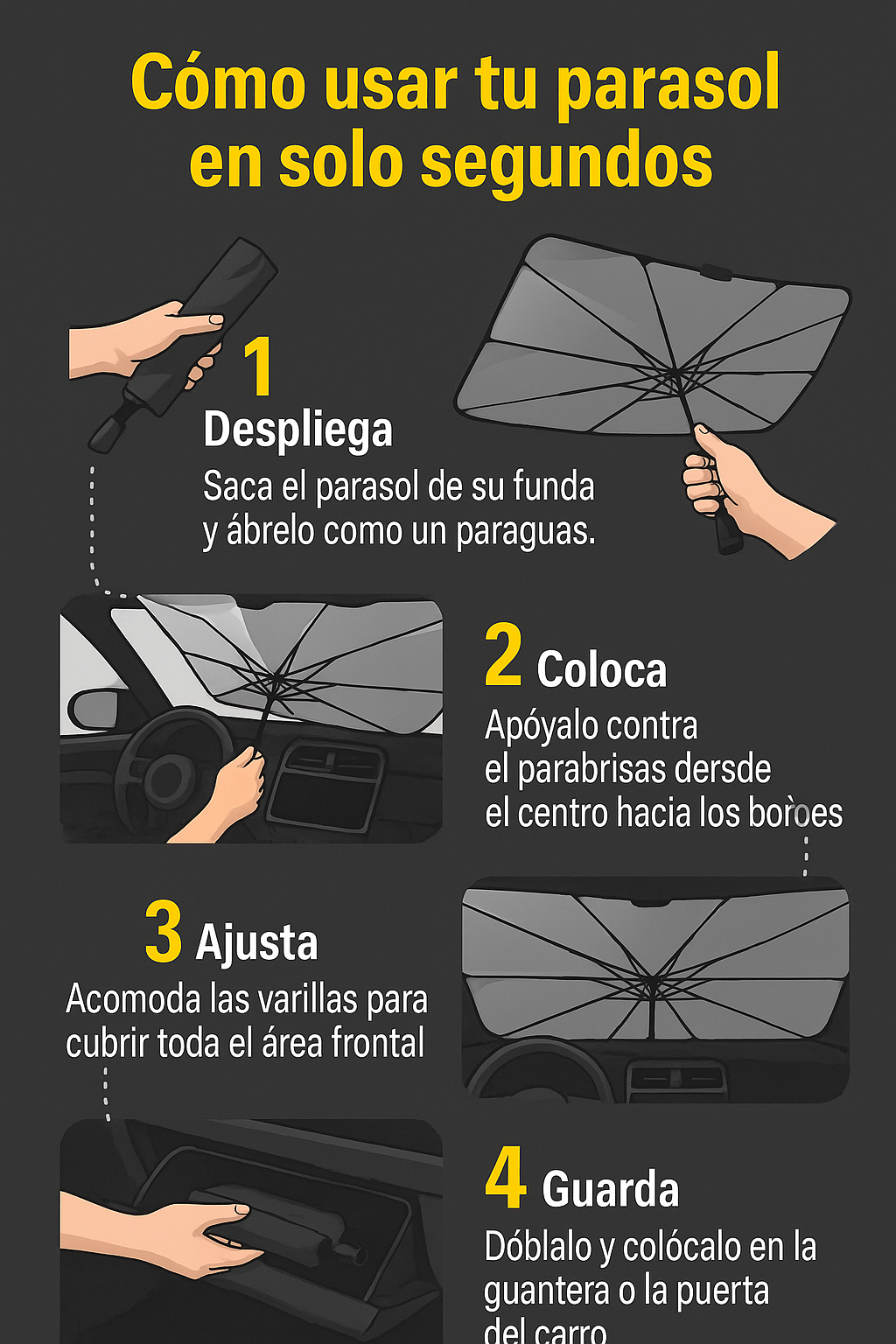 Parasol interior para coche🚙🚗 cubierta de parabrisas, protección UV🌞 parasol para ventana delantera, paraguas plegable💫le permite que la temperatura dentro de su carro baje y se refresque 🌬💨se puede guardar con facilidad y subte toda la parte delantera del auto ☀️⚡️